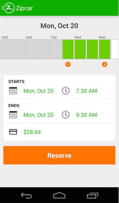 Zipcar 101 Zipcar is car-sharing, an alternative to car ownership that gives you wheels when you want them. • Cars are self-service and on-demand (the keys are right inside the cars!) reservation • Reservations start at $7.75/hour and $73/day ... Retrieve Document